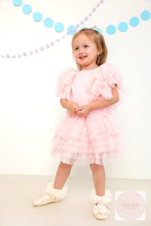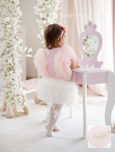 BLUZKA BLUZKA WINGS - PUDROWY RÓŻ KRÓTKI RĘKAW MANUFAKTURA FALBANEK