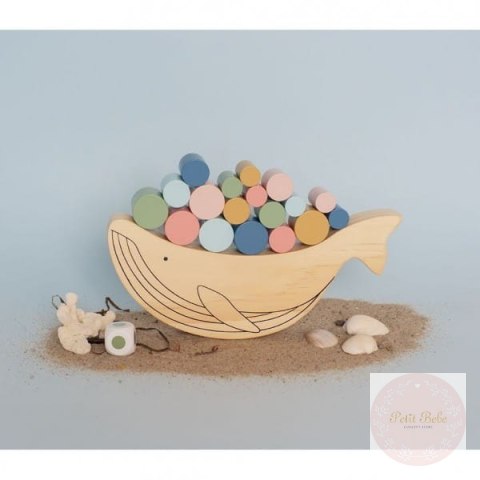 Gra polega na położeniu jak największej ilości klocków, na grzbiecie wieloryba, jednocześnie uważając aby żadnego klocka nie zrzucić. W wersji dla młodszych dzieci, możemy dowolnie układać klocki, w wersji dla starszych można dodatkowo wprowadzić kostkę (jest w zestawie) i układać lub wyciągać klocek w kolorze wyrzuconych kostką. Prawdziwa zabawa zaczyna się, gdy na szczycie wieloryba mamy już sporo klocków.