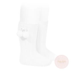 CIEPŁE BAWEŁNIANE PODKOLANÓWKI Z POMPONEM BIANCO BIAŁE CONDOR #200
