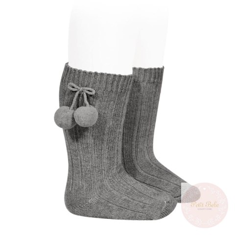 CIEPŁE BAWEŁNIANE PODKOLANÓWKI Z POMPONEM LIGHT GREY #230