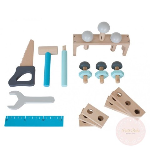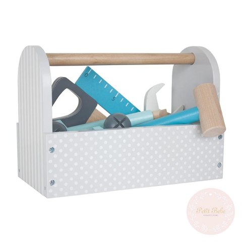 Bajeczna drewniana skrzynia z narzędziami szwedzkiej marki Jabadabado ucieszy każdego małego majsterkowicza. Kolorowa, pięknie wykonana skrzynia a w niej: piła, młotek, śrubokręt, śrubki czyli wszystko co potrzebne. Zabawka świetnie rozwija sprawność manualną.   Wymiary: 23x12x16 cm Wiek: 3+ Jabadabado to szwedzka firma istniejąca na rynku od 1993 roku specjalizująca się w projektowaniu i produkcji zabawek drewnianych, elementów wyposażenia pokoi dziecięcych. Wszystkie produkty Jabadabado cechuje oryginalny design, piękna kolorystyka i niezwykle staranne wykonanie. Wszystkie zabawki marki Jabadabado stworzone są z myślą o dzieciach i pobudzają do kreatywnej zabawy.