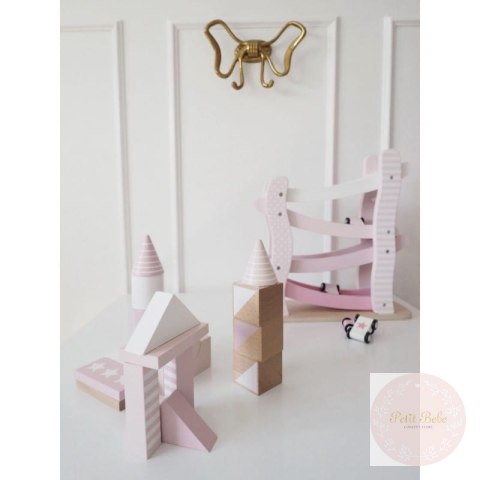 Drewniana zjeżdżalnia dla aut pastelowy róż