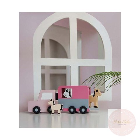 Drewniany samochód z przyczepą dla koni Jabadabado