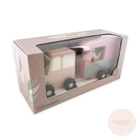 Wspaniały drewniany samochód w różowej kolorystyce z przyczepą do przewozu koni. Na pokłądzie tego uroczego auta znajdują się trzy konie, każdy z nich w innej kolorystyce. Idealny pomysł na prezent- sprawi wiele radości fanom koni, jak i wielbicielom zabawy w wiejskie podwórze. Ta drewniana ciężarówka składa się z auta i przyczepy z rampą, którą można odpiąć i jeździć jedynie autem. Jest to zabawka idealna do tworzenia niepowtarzalnych historii i przeżywania niezwykłych przygód. Drewniane zabawki wpływają pozytywnie na wszechstronny rozwój dziecka. Rozwijają kreatywne myślenie. Zestawy ćwiczą małe rączki i pomagają w rozwoju zdolności manualnych. Kontakt z drewnianymi zabawkami daje dużo radości i rozwija poczucie estetyki u dziecka. Drewniane figurki zwierząt są stojące można je wykorzystywać do samodzielnej zabawy w gospodarstwo wiejskie. Zapakowana w gustowne pudełko idealnie sprawdzi się na prezent, który sprawi wiele frajdy dziecku i rodzicom. Wiek: 18miesiecy+ Wymiary: 34 x 9 x 10 cm Jabadabado to szwedzka firma istniejąca na rynku od 1993 roku specjalizująca się w projektowaniu i produkcji zabawek drewnianych, elementów wyposażenia pokoi dziecięcych. Wszystkie produkty Jabadabado cechuje oryginalny design, piękna kolorystyka i niezwykle staranne wykonanie. Wszystkie zabawki marki Jabadabado stworzone są z myślą o dzieciach i pobudzają do kreatywnej zabawy.