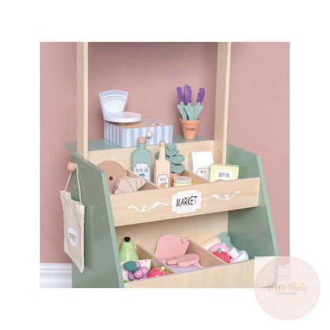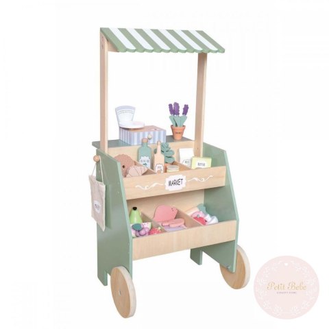 Drewniany sklep z bogatym wyposażeniem - jeżdżący stragan na kółkach szwedzkiej marki Jabadabado -to gwarancja udanej, kreatywnej i smacznej zabawy! Ten uroczy zestaw jest niezwykle bogato wyposażony, zawiera wszystko to co niezbędne! Wszystkie dzieci uwielbiają zabawy w sklep - mobilny stragan duży wózek z owocami, warzywami, rybami i pieczywem - pozwoli na zakupy wszystkim misiom, lalom i członkom rodziny. Zabawa w dom czy sklep świetnie pobudza dziecięcą wyobraźnię, rozwija słownictwo a pakowanie produktów ćwiczy sprawność manualną i koordynację ręka-oko. Świetny zestaw na prezent!