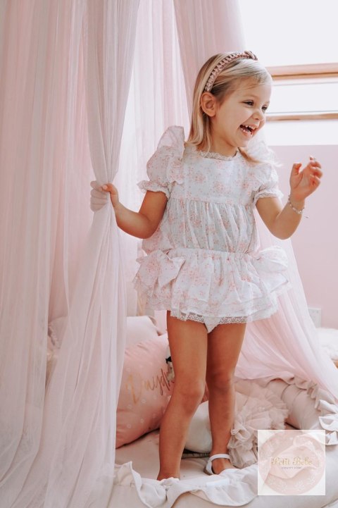 Przepiękny komplet - bloomers i bluzeczka o wiosennym kwiatowym princie.