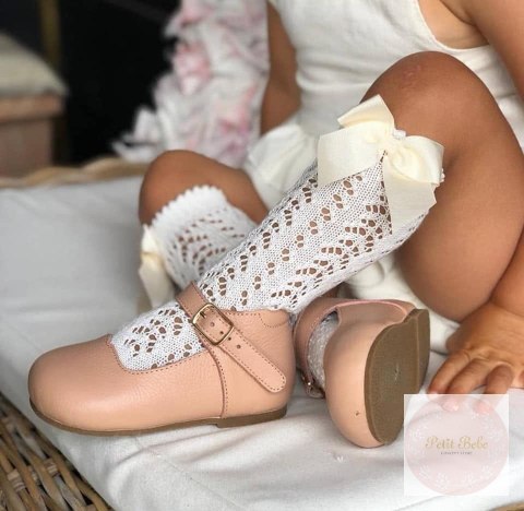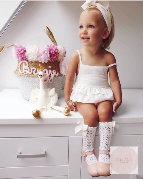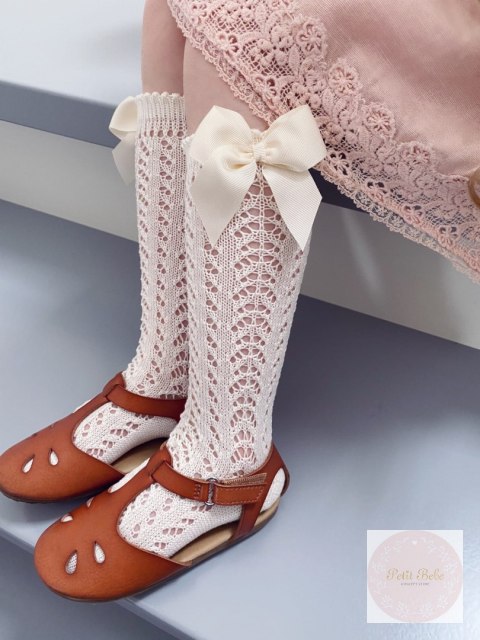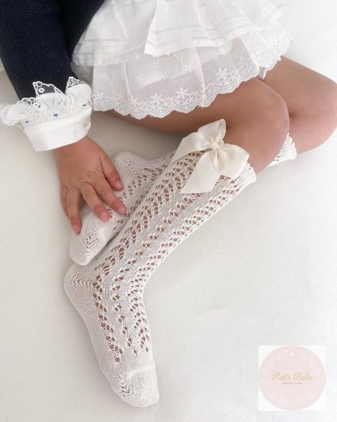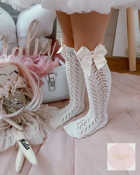 Podkolanówki ażurowe z kokardą dla dziewczynki.