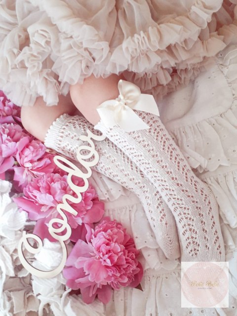 PODKOLANÓWKI AŻUROWE Z KOKARDĄ ECRU CONDOR #303