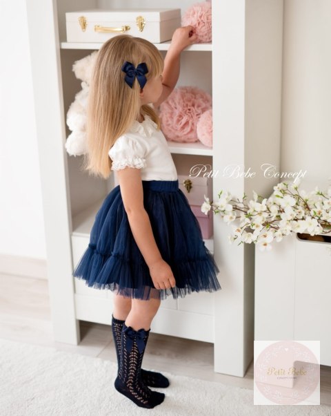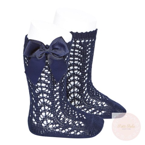 PODKOLANÓWKI AŻUROWE Z KOKARDĄ NAVY BLUE CONDOR #480