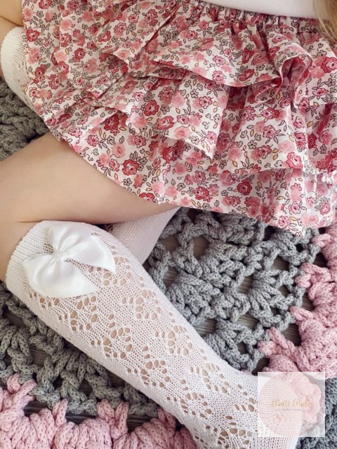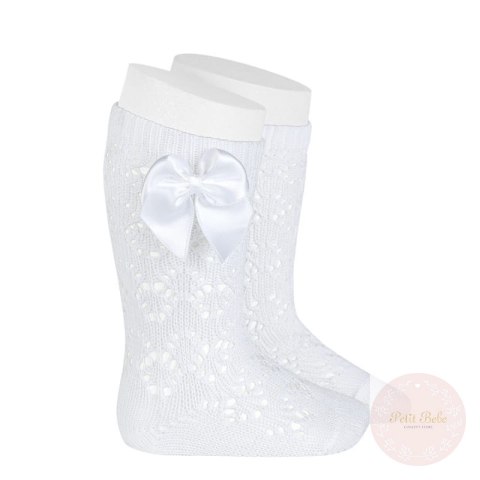 PODKOLANÓWKI AŻUROWE Z KOKARDĄ PERLE BIANCO BIAŁE #200