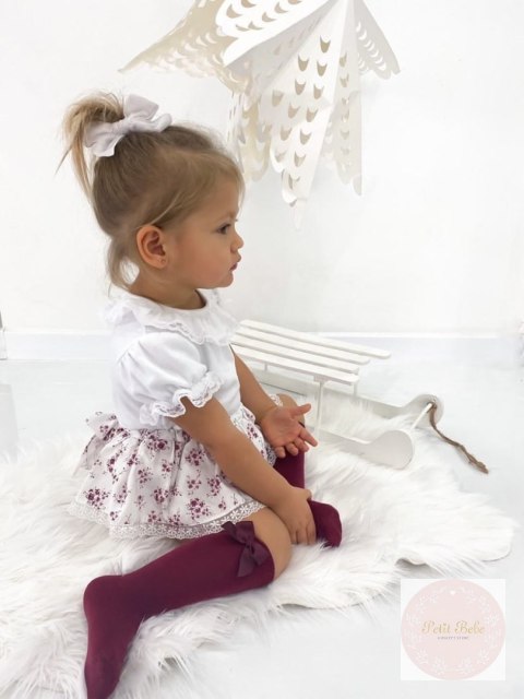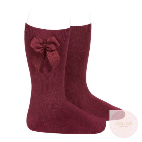 PODKOLANÓWKI BASIC Z KOKARDĄ BORDO #575