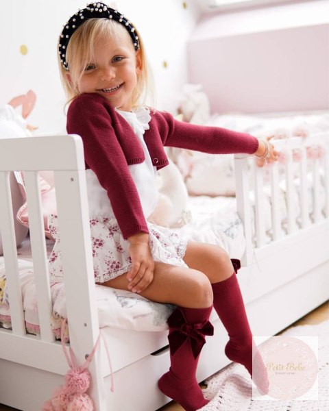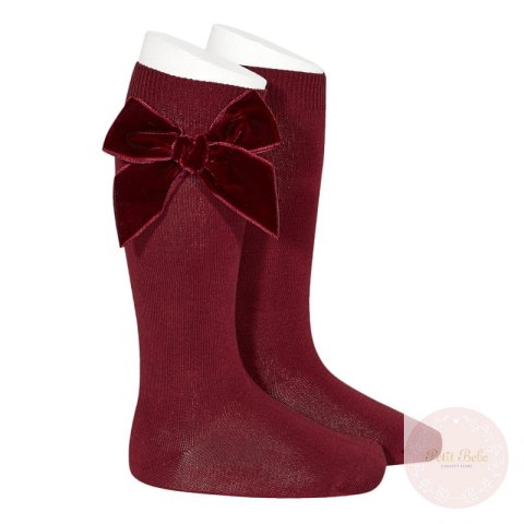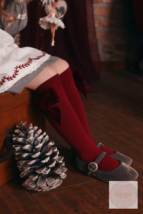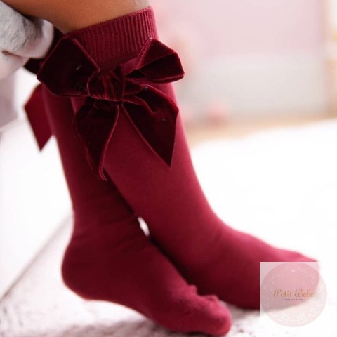 PODKOLANÓWKI BAWEŁNIANE Z KOKARDĄ VELVET BORDO