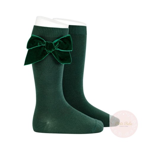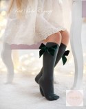 PODKOLANÓWKI BAWEŁNIANE Z KOKARDĄ VELVET PINE ZIELEŃ #795