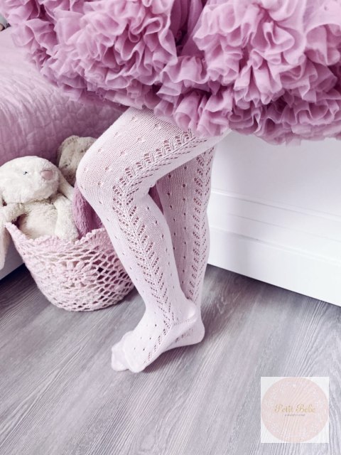 Ażurowe, bawełniane rajstopy z bocznym wzorem.