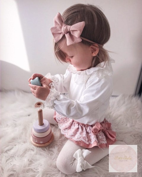 Rajstopy bawełniane z aksamitną kokardą dla dziewczynki.