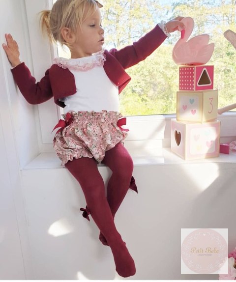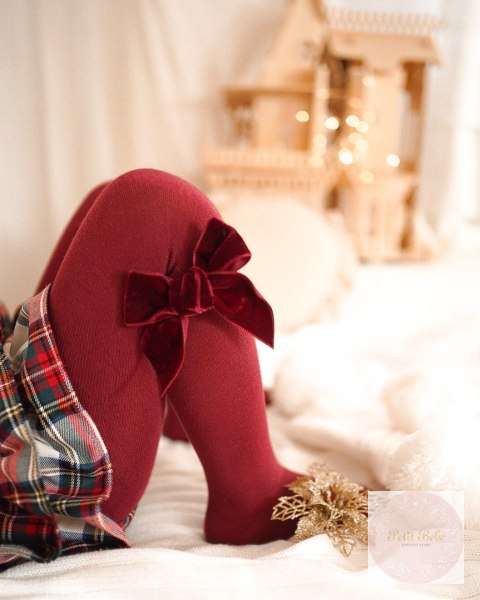 RAJSTOPY BAWEŁNIANE Z KOKARDĄ VELVET BORDO #575