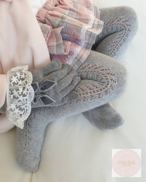 Boczne ażurowe rajstopy bawełniane dla dziewczynki.
