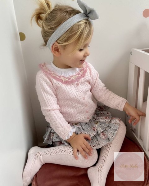 Boczne ażurowe rajstopy bawełniane dla dziewczynki.