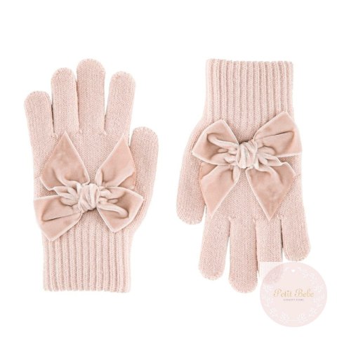 RĘKAWICZKI Z KOKARDĄ VELVET NUDE #674