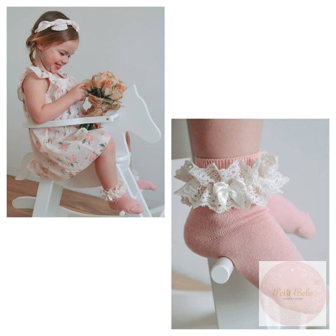 Bawełniane skarpetki z koronką i kokardką. Idealne na specjalne okazję.