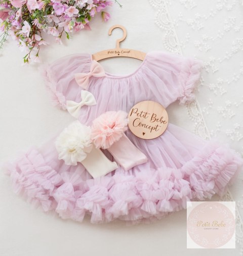 SUKIENKA TIULOWA LAWENDOWA LITTLE DOLLY FRILLY DRESS LAVENDER
