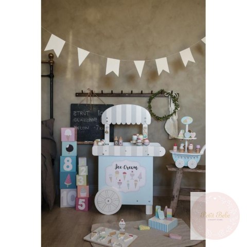 Drewniany sklep lodziarnia na kółkach szwedzkiej marki Jabadabado -to gwarancja udanej, kreatywnej i smacznej zabawy! Wszystkie dzieci uwielbiają lody - mobilny sklep duży wózek z lodami, pozwoli na serwowanie ulubionych smakołyków wszystkim misiom, lalom i członkom rodziny. Zabawa w dom, sklep czy lodziarnię świetnie pobudza dziecięcą wyobraźnię, rozwija słownictwo a nakładanie lodów ćwiczy sprawność manualną i koordynację ręka-oko. Świetny zestaw na prezent!