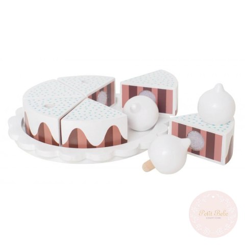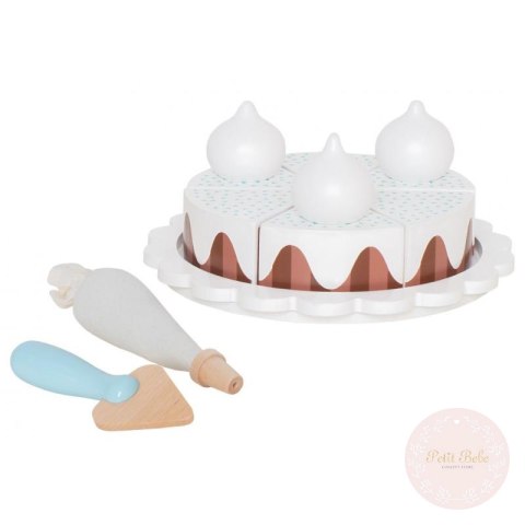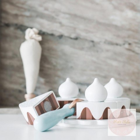Niezwykle smakowicie wyglądający drewniany tort z białęj czekolady z bezami do krojenia - idealny na dziecięce zabawy w odgrywanie ról. W zestawie talerz, sześć porcji ciasta połączonych na rzep, nożyk i i narzędzie do dekoracji. Świetnie sprawdzi się na niejednym przyjęciu. Wysokość: 7 cm Średnica: 16 cm Wiek: 3+ Jabadabado to szwedzka firma istniejąca na rynku od 1993 roku specjalizująca się w projektowaniu i produkcji zabawek drewnianych, elementów wyposażenia pokoi dziecięcych. Wszystkie produkty Jabadabado cechuje oryginalny design, piękna kolorystyka i niezwykle staranne wykonanie. Wszystkie zabawki marki Jabadabado stworzone są z myślą o dzieciach i pobudzają do kreatywnej zabawy.